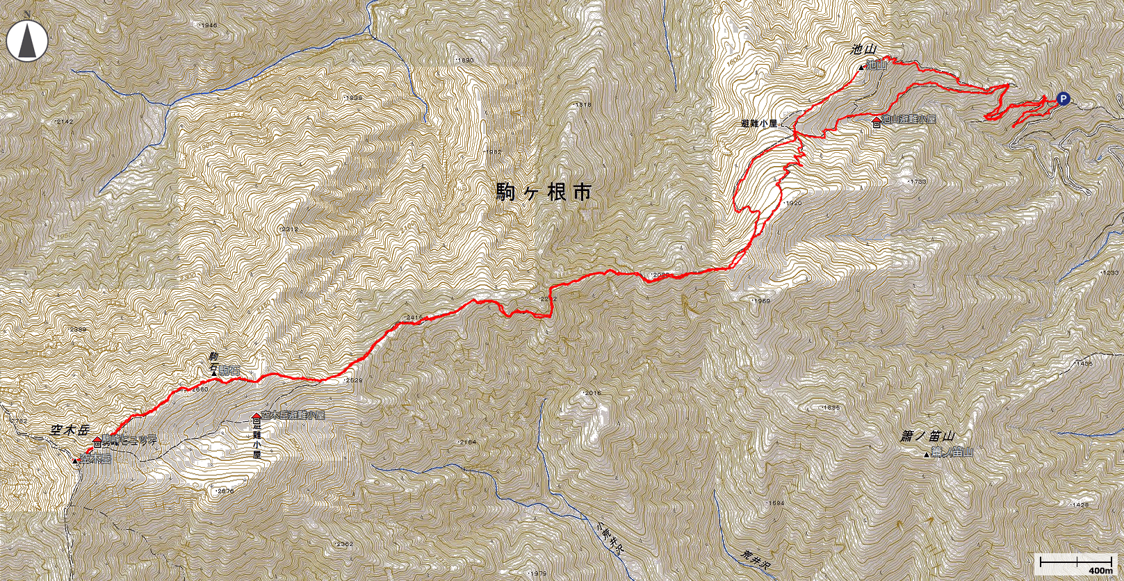 →10:03小地獄→10:07大地獄→10:40マセキ平→10:47尻無→11:09池山尾根水場→11:32池山