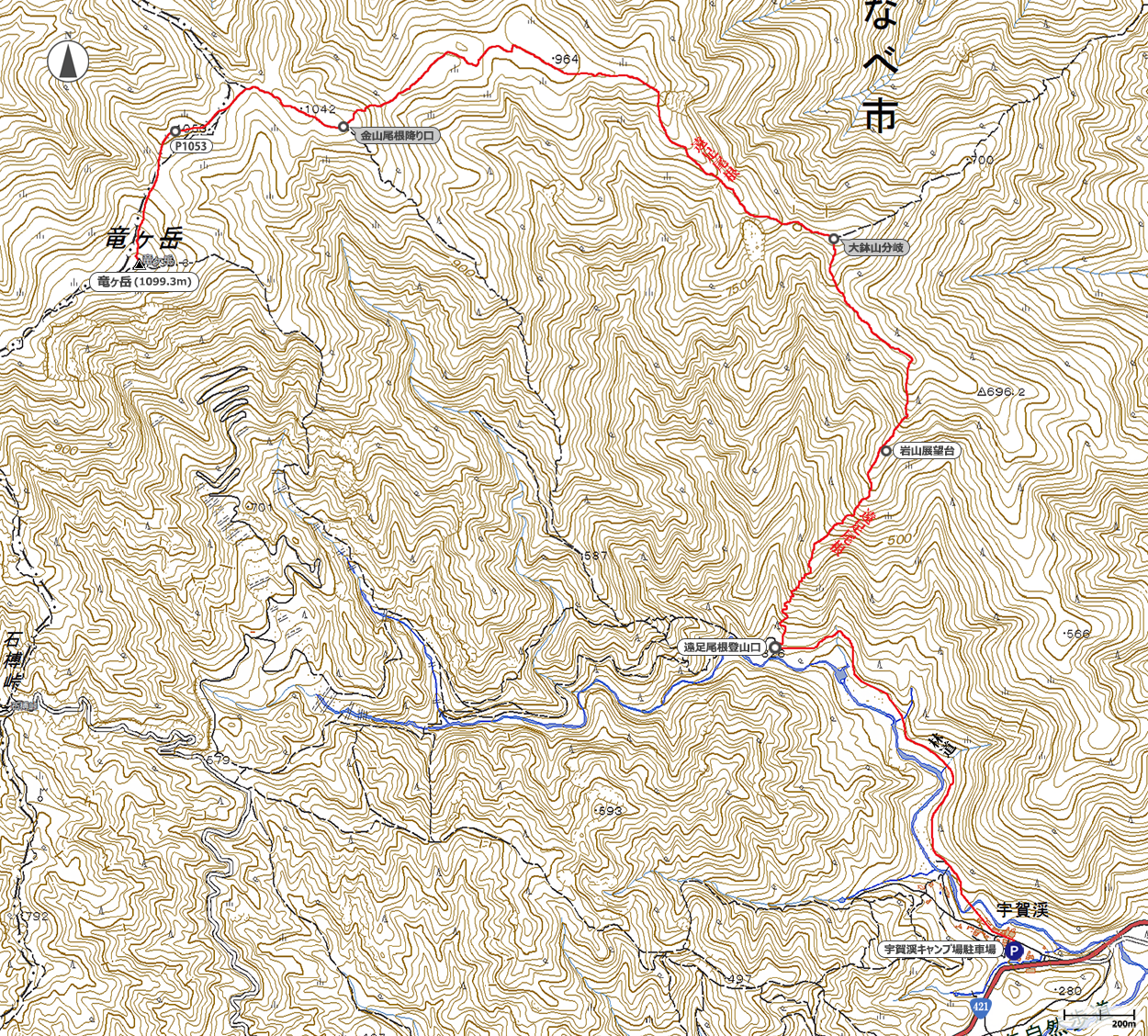 9:00宇賀渓駐車場→9:23遠足尾根登山口→10:20岩山展望台