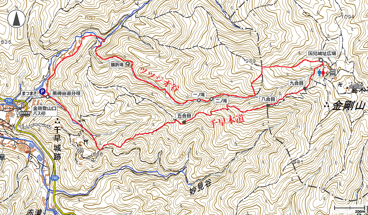 →19:36五合目(千早本道)→20:02まつまさの駐車場