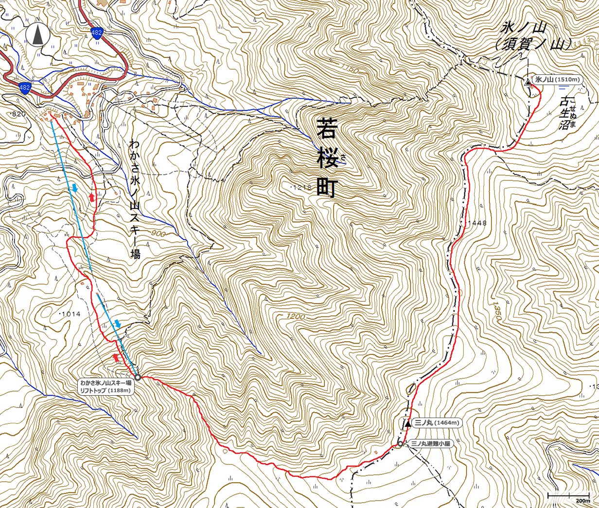 8:45わかさ氷ノ山ゲレンデトップ→9:40三の丸避難小屋→11:17氷ノ山山頂