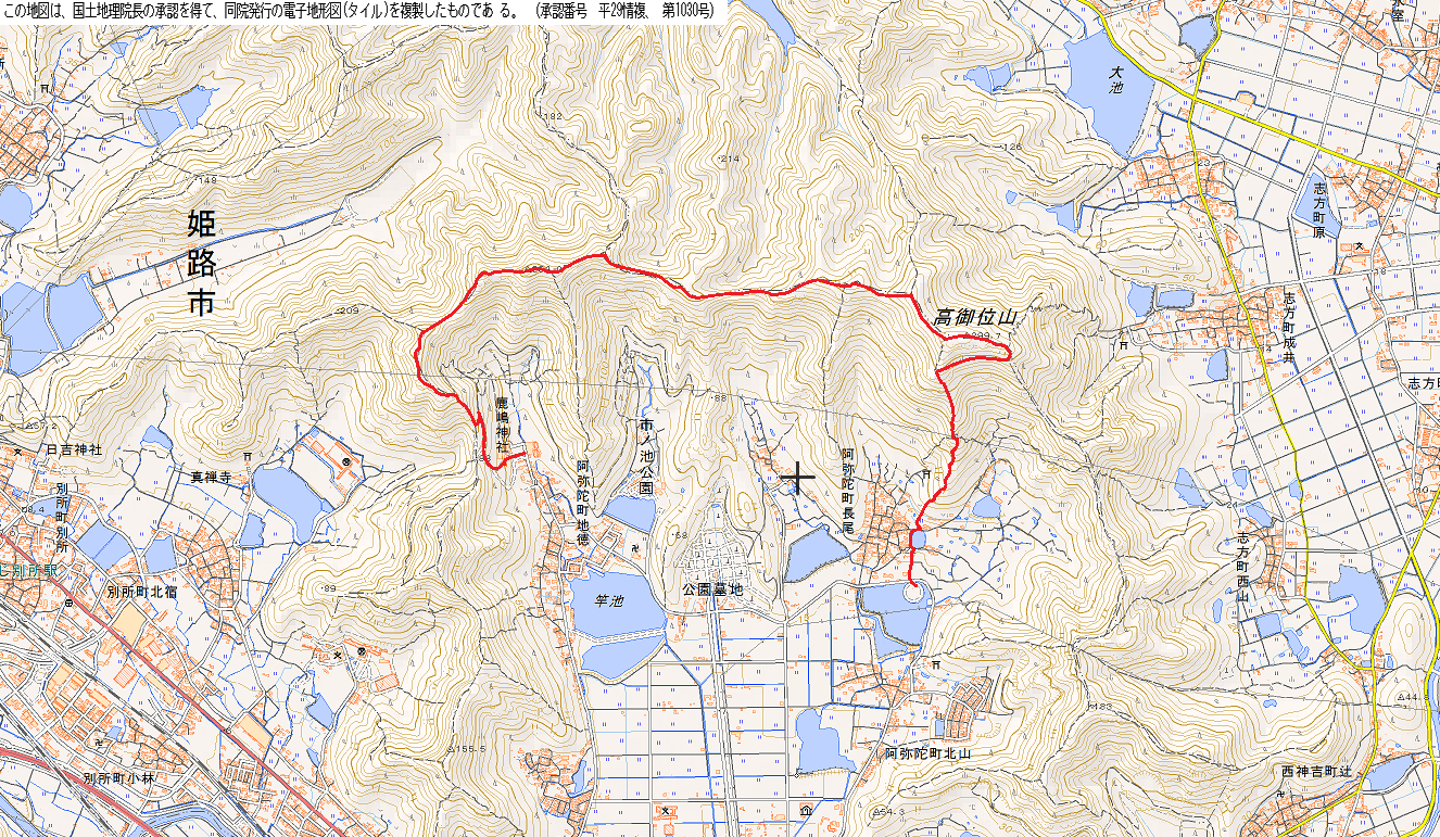 →18:07高御位山→19:38下山開始→20:16長尾登山口