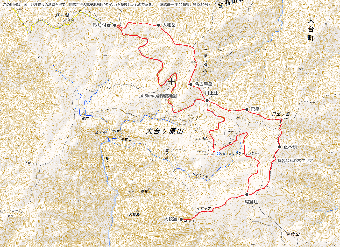 08:47大台ケ原駐車場→09:38大和岳取り付き→10:02大和岳→10:44三津河落山