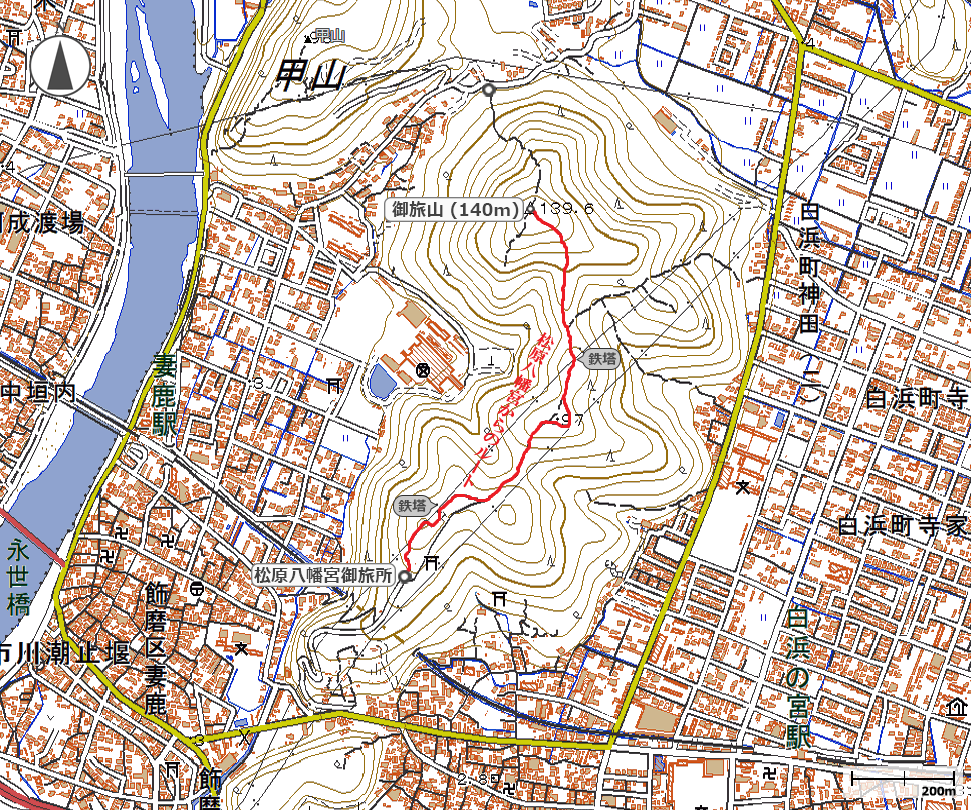 16:13駐車場所→16:15松原八幡宮御旅所→16:36御旅山