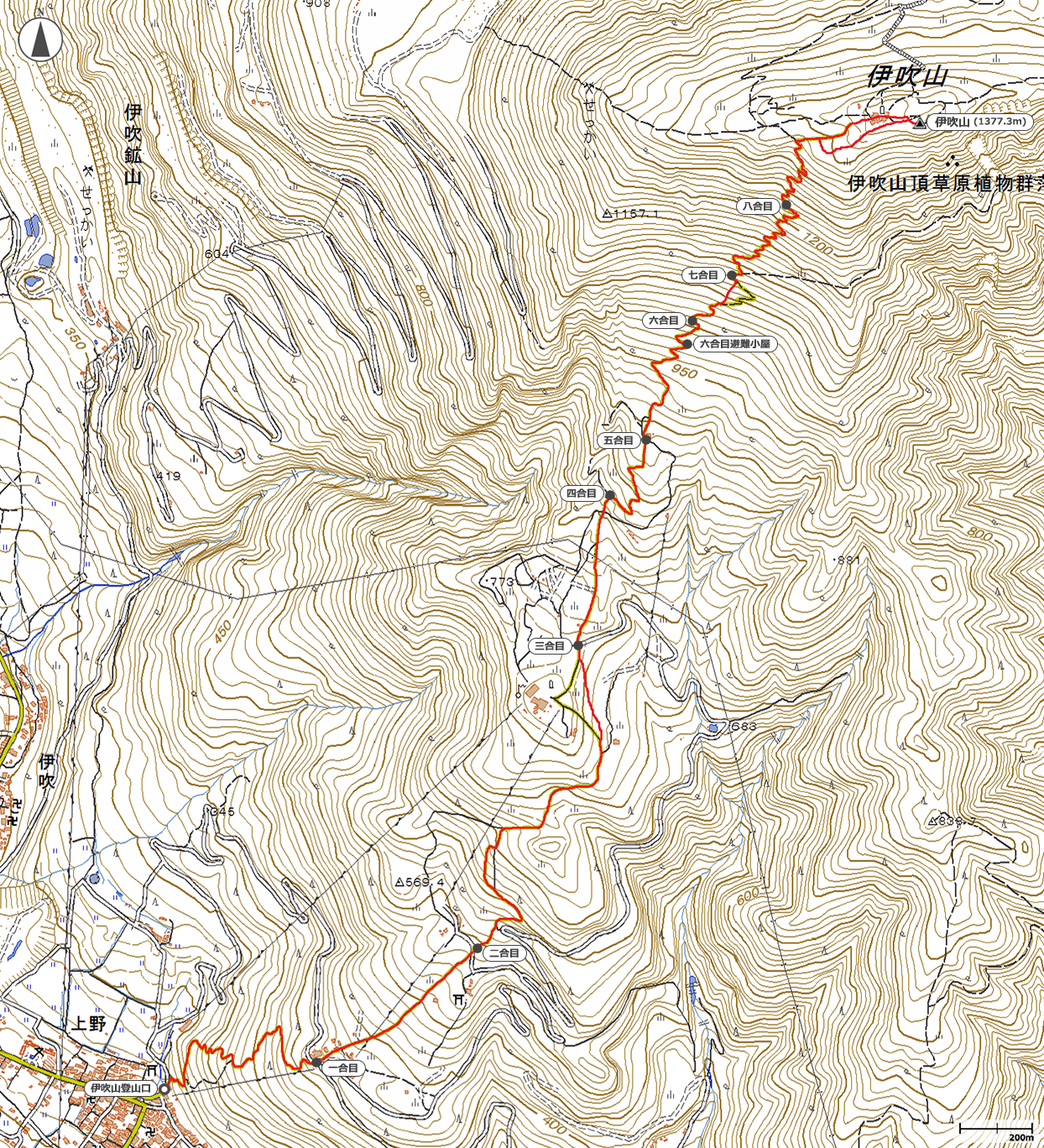 9:00伊吹山登山口→10:00三合目→10:50六合目→12:30伊吹山山頂