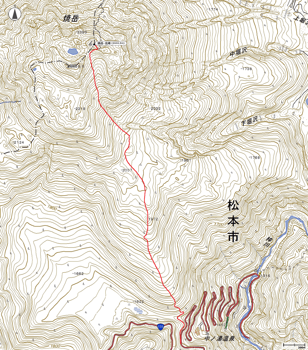 →13:45下山開始→14:20下堀沢出合→15:00焼岳登山口