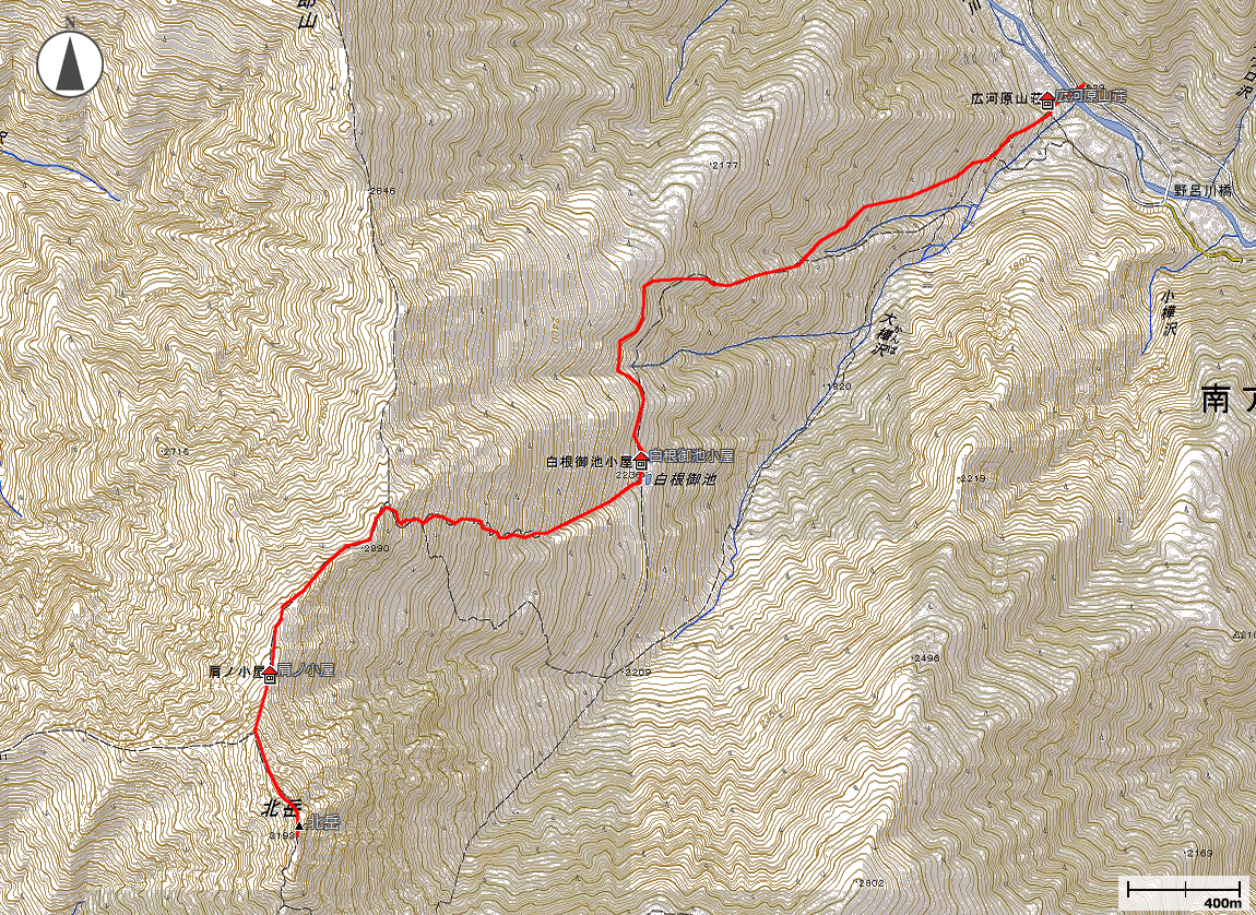 →11:18下山開始→11:55肩ノ小屋→13:06白根御池→15:08広河原