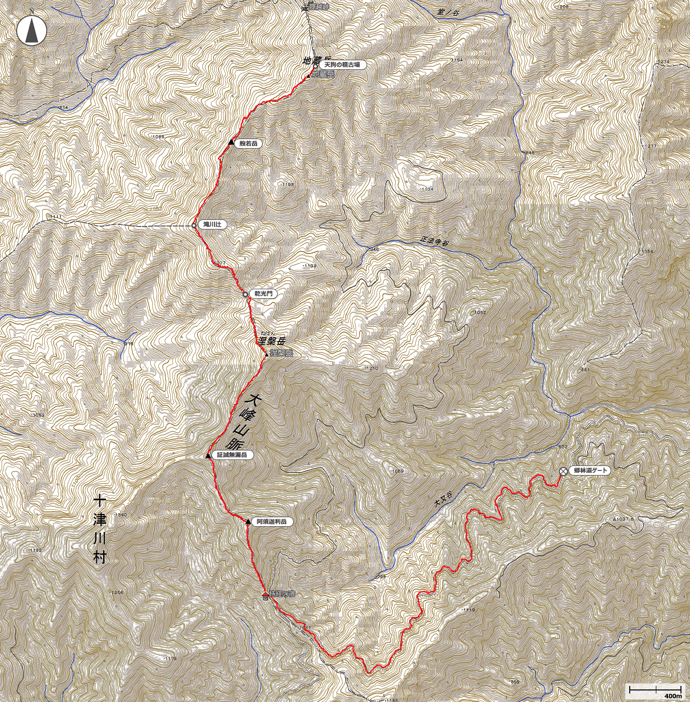 6:06池郷林道ゲート→7:30林道終点→7:48持経の宿→9:12涅槃岳