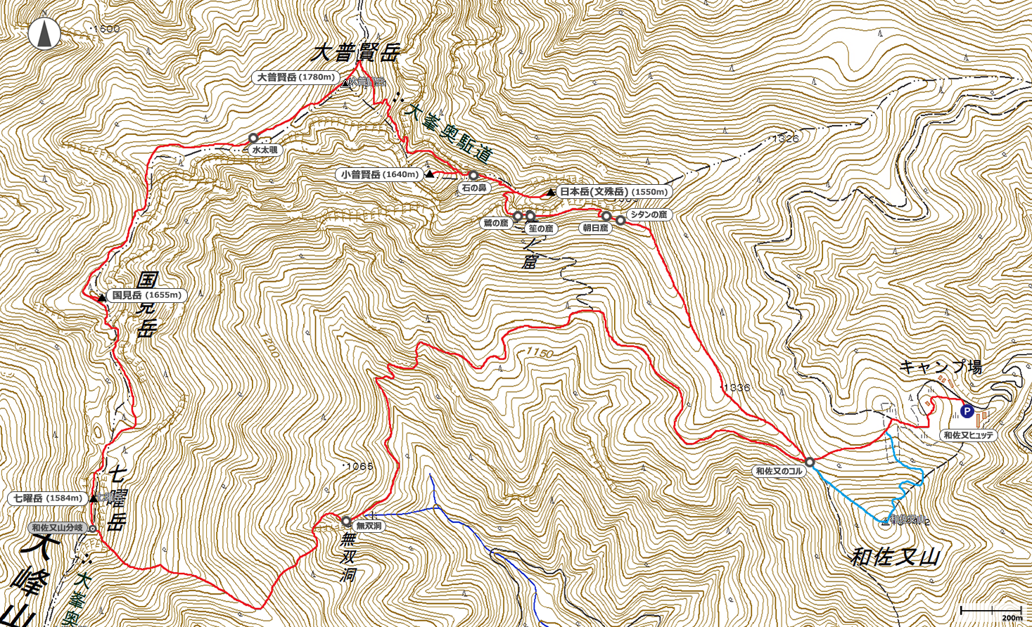 →15:32七曜岳→17:01無双洞→19:30和左又ヒュッテ