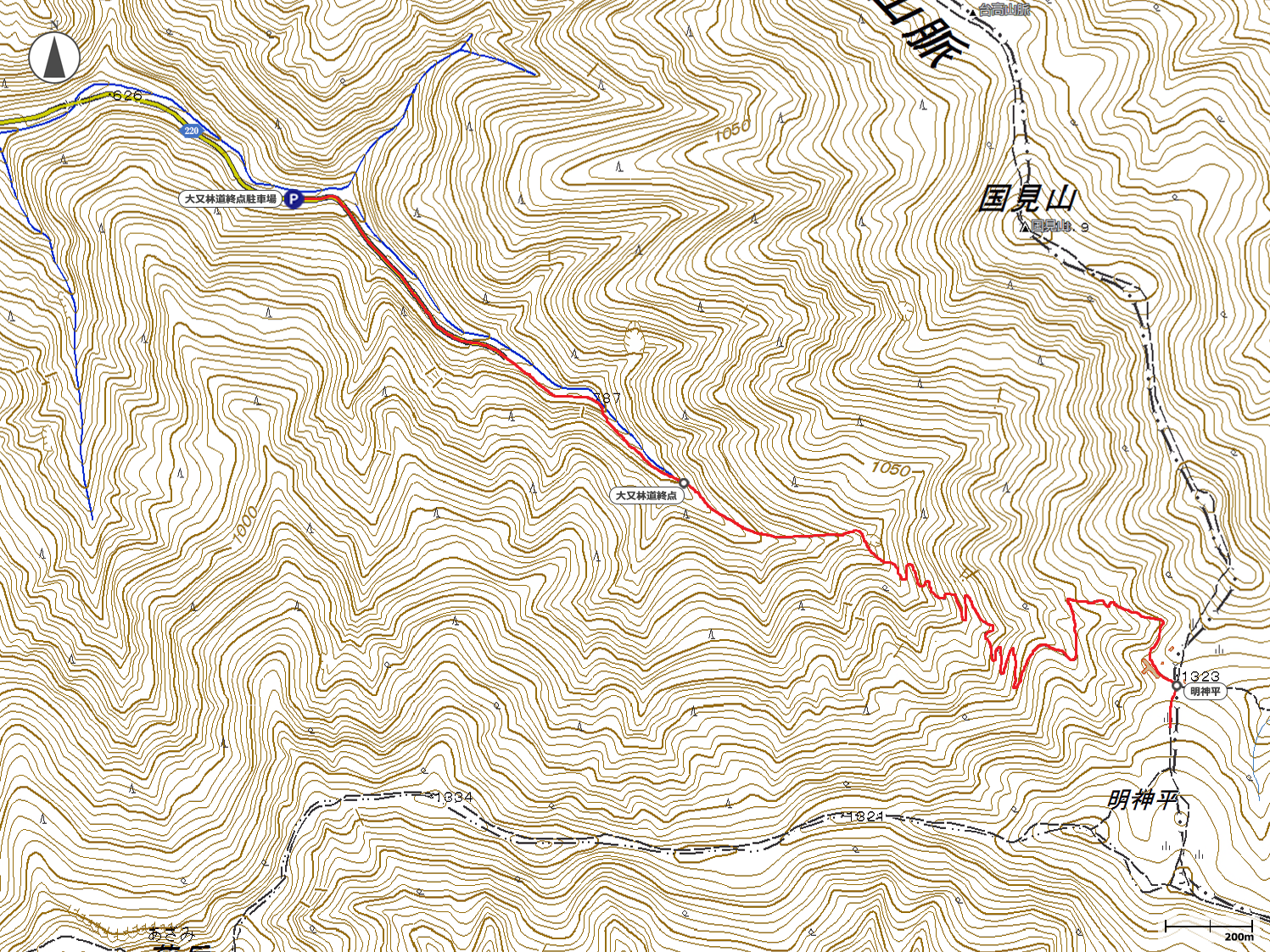8:32大又林道の駐車場→8:48登山口→11:38明神平