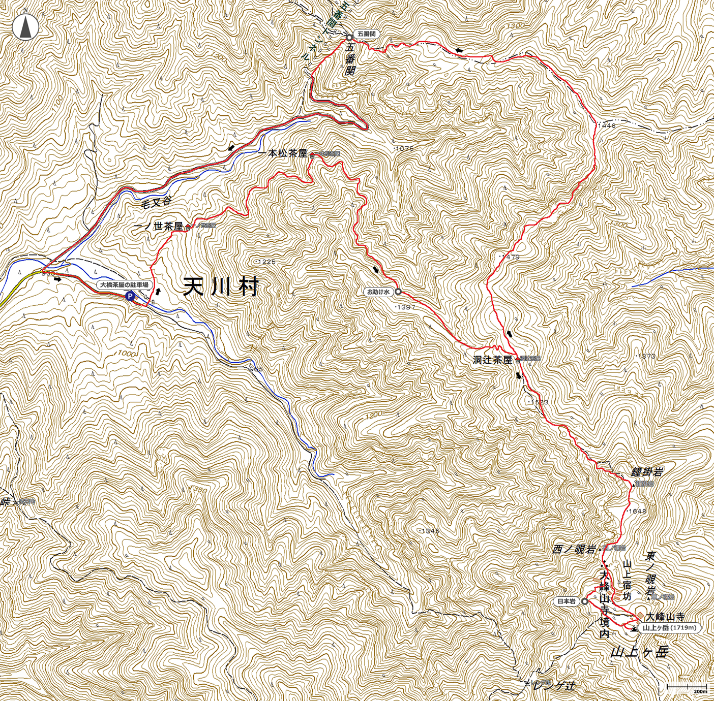 →10:34洞辻茶屋→11:12山上ヶ岳山頂→三角点→11:35下山開始
