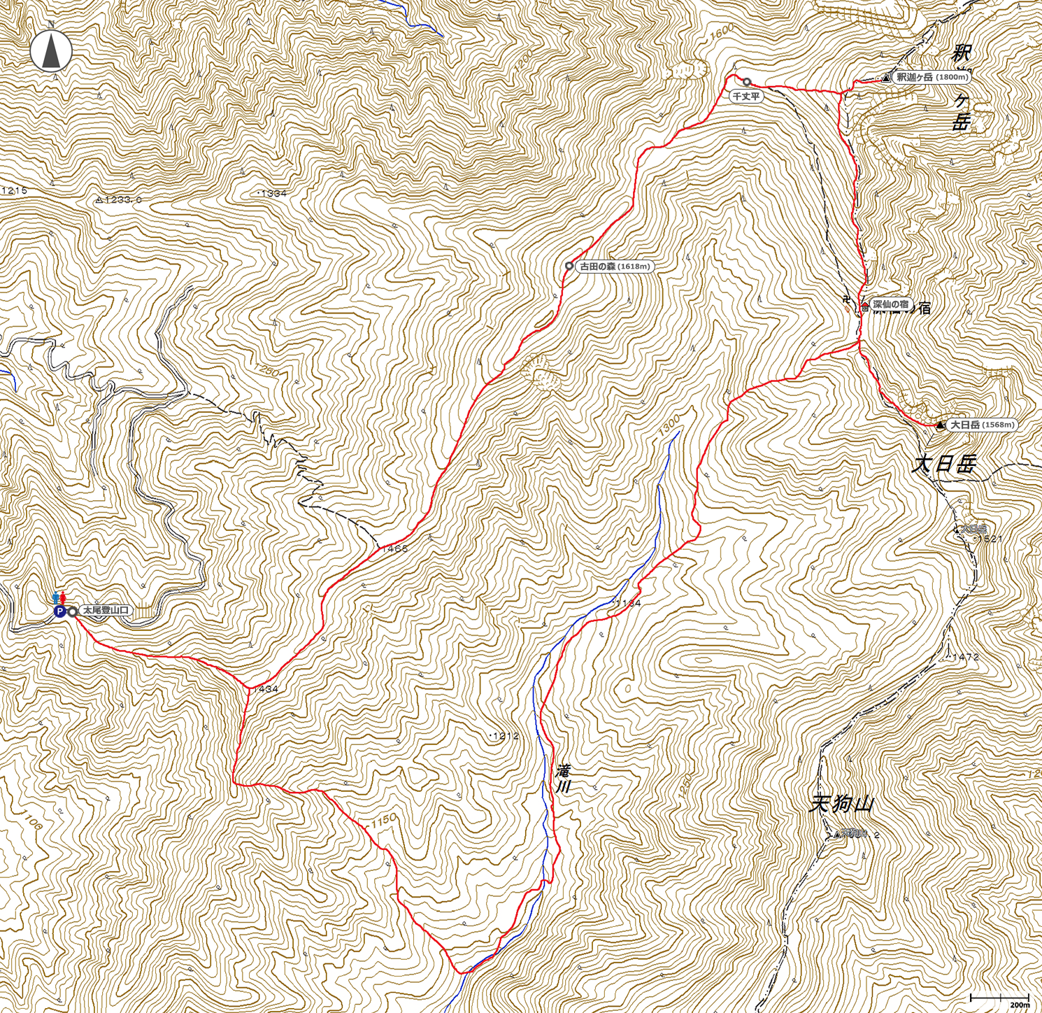 →10:51赤井谷→11:23橋→13:16深仙ノ宿→14:03大日ヶ岳へ出発→14:20大日ヶ岳
