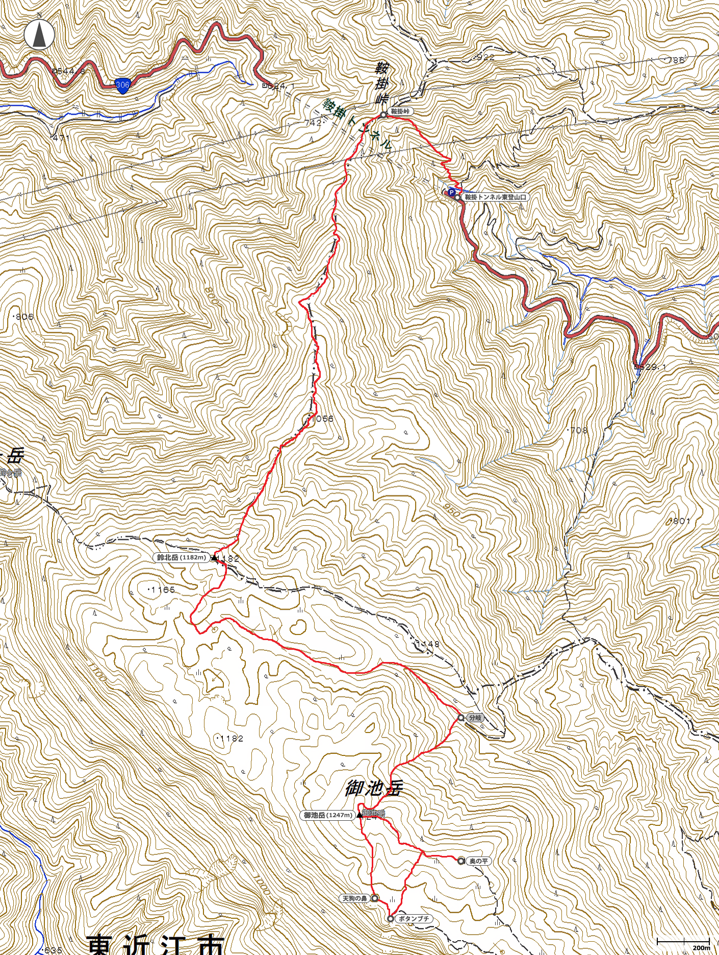 鈴北岳~御池岳地図