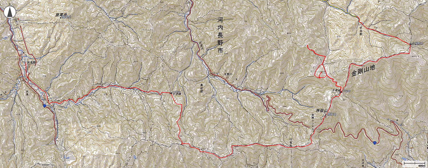 久留野林道入り口は金剛山ロープウェイ手前にあります。ダイトレなので迷うことはありません。久留野峠までの間は舗装道路で急坂もありますが、ウォーミングアップにはちょうどいい感じです。中葛城山の山頂を過ぎたあたりから、笹藪越しに奈良方面の展望がかなり良いです。それから高谷山山頂を経て千早峠に下ります。千早峠から東條山への道しるべはありませんので地図と情報を頼りに行くしかありません。ここから千早峠~東條山のピストンをします。そして、私も間違えましたが花尾山と東條山は勘違いしやすいです。東條山から再び千早峠に戻ってきました。ここからダイトレコースの続きを歩いていきます。神福山山頂はダイトレコースから少し離れますが、たいした回り道でもないので、ピークハントします。そこからダイトレに戻り、行者杉~杉尾峠~タンボ山へと向かいます。今回はタンボ山からダイトレから離れて十字峠から下り、天見駅で終わりにしました。長い道のりでしたが満足のいく縦走、山行になりました。