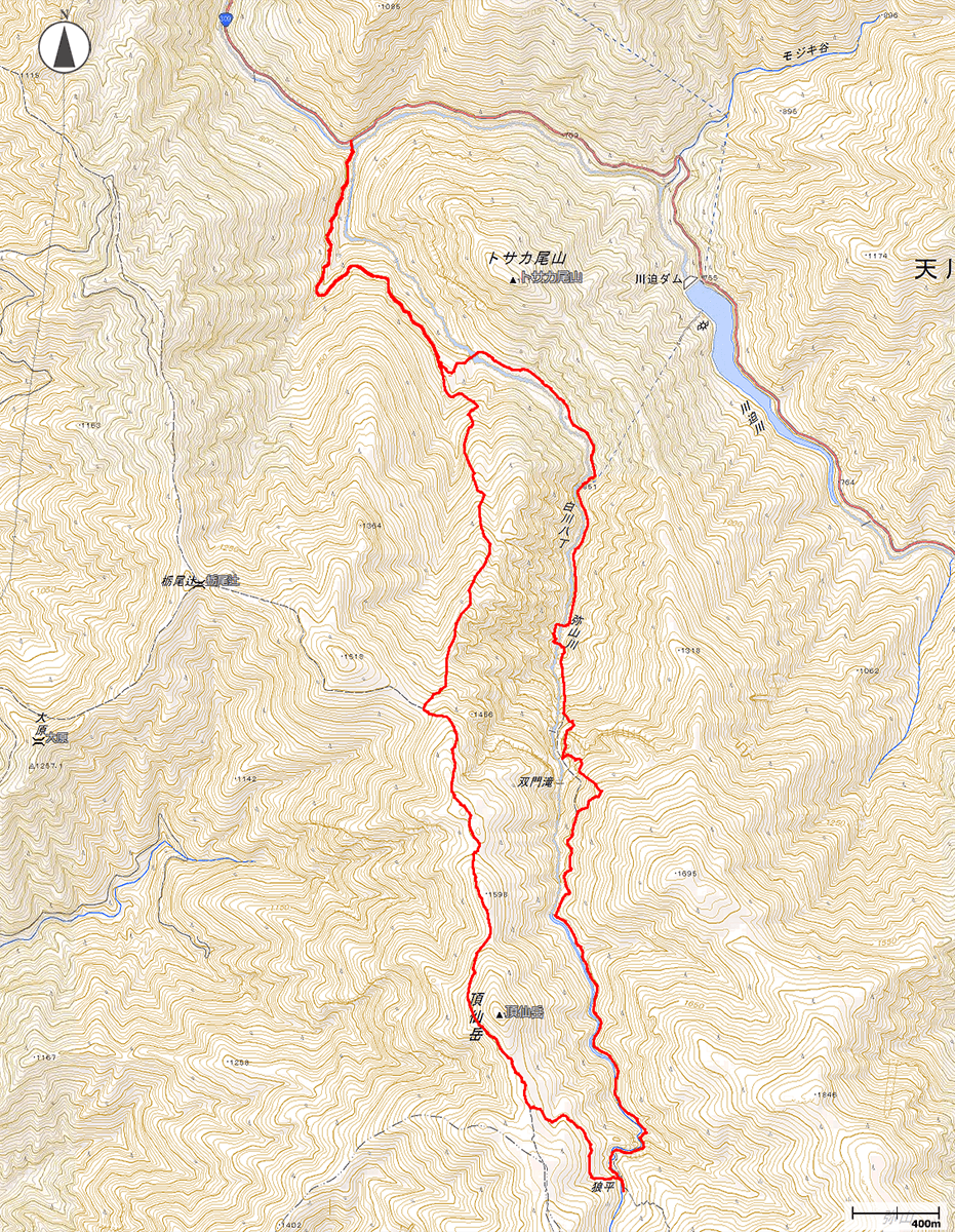 6:04熊渡→6:31金引橋分岐→6:40白川八丁→8:38一ノ滝→10:31双門滝