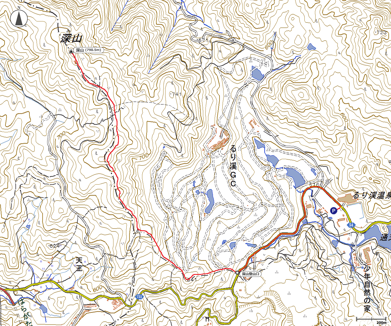 13:16るり渓駐車場→13:30深山登山口→14:40深山山頂