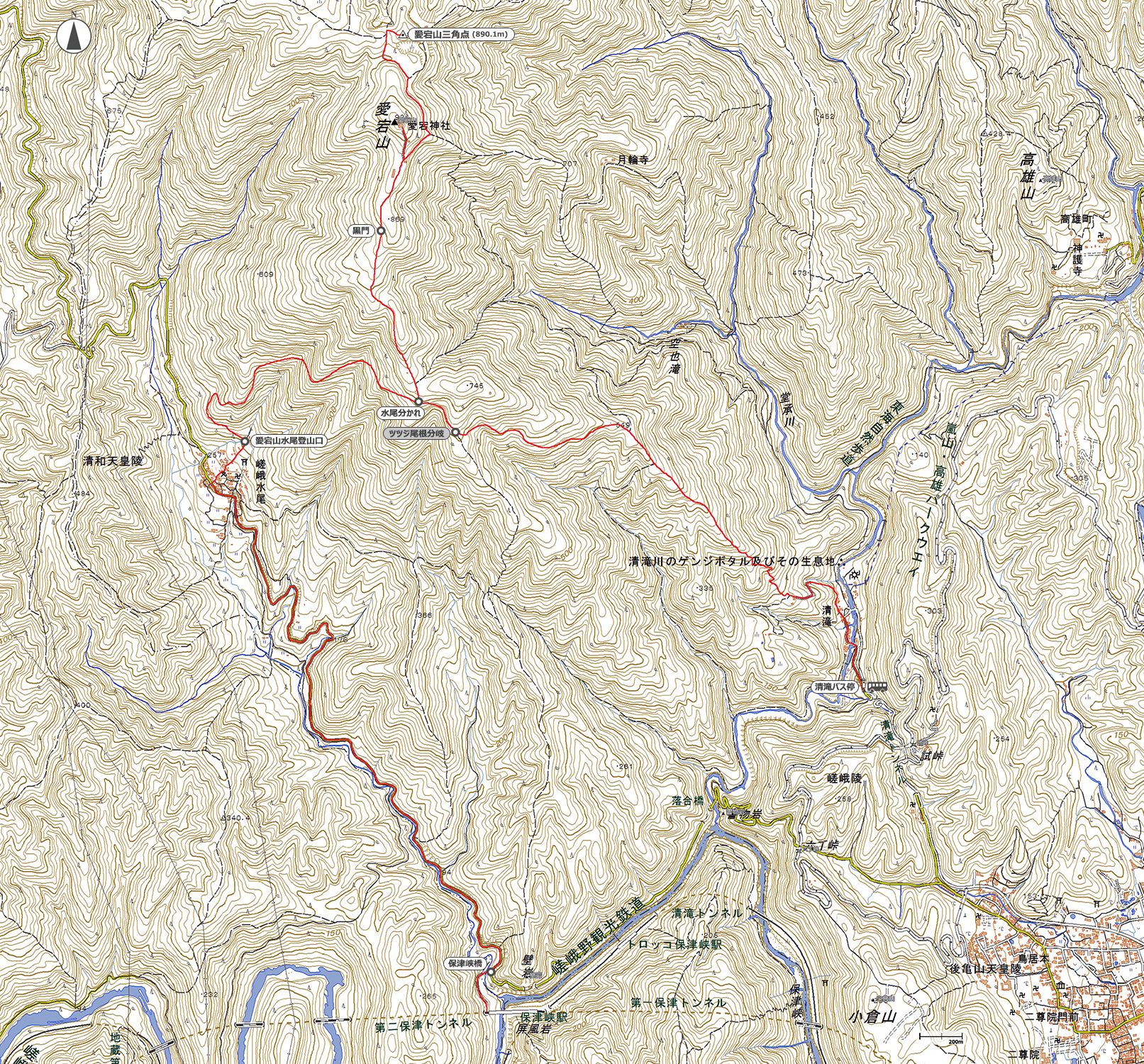 9:00清滝バス停→9:10愛宕山登山口→10:30五合目→10:50七合目→11:05水尾分岐