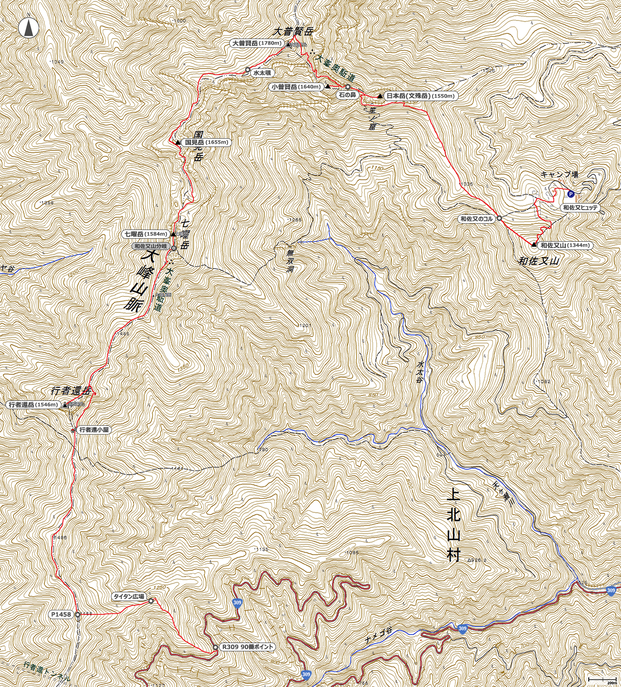 →17:25行動開始→18:05尾根分岐→18:25タイタン地点→18:50国道309号線90番