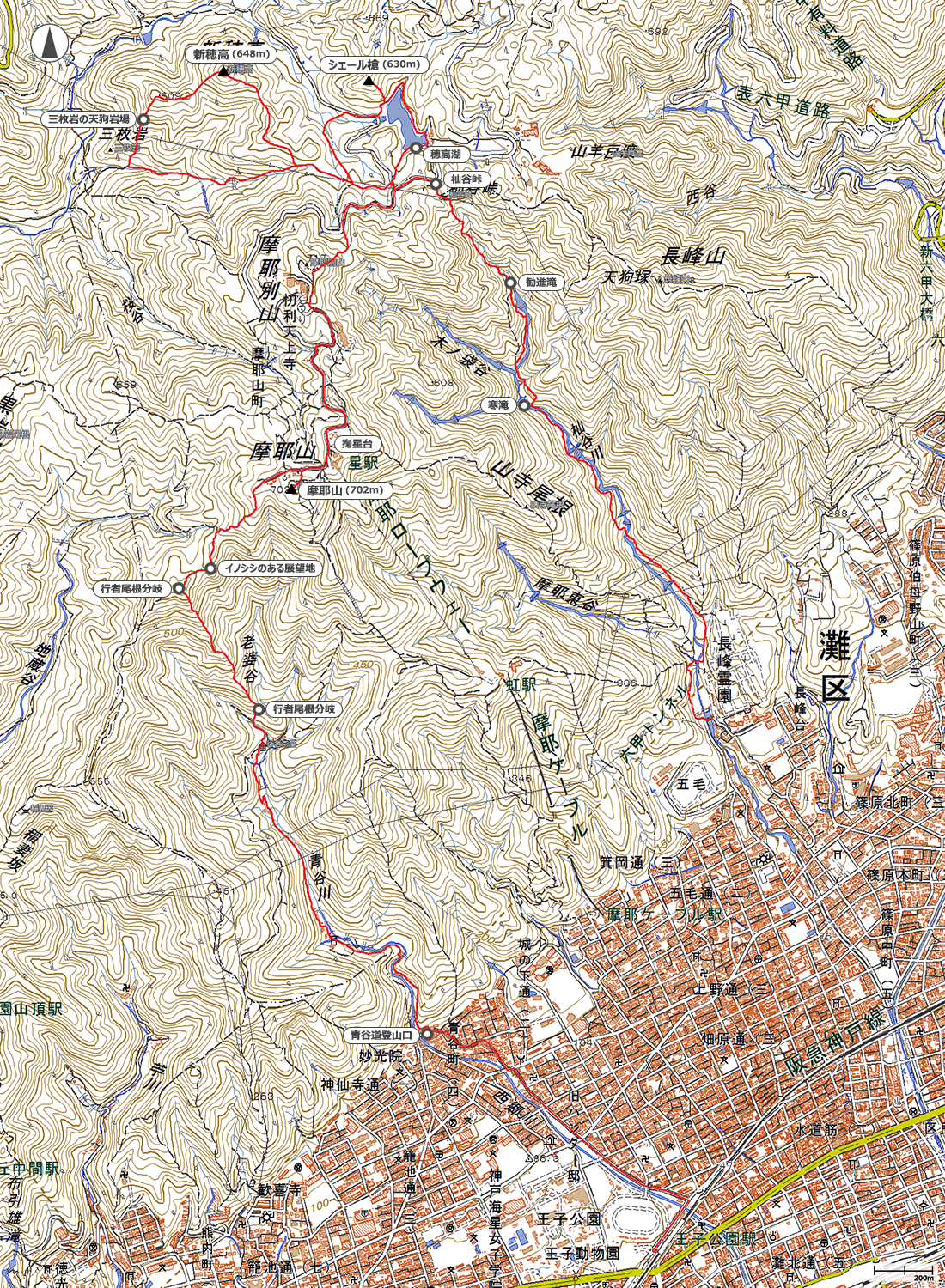 9:10王子公園駅→9:33青谷道登山口→10:06行者堂→10:42行者尾根ケルン