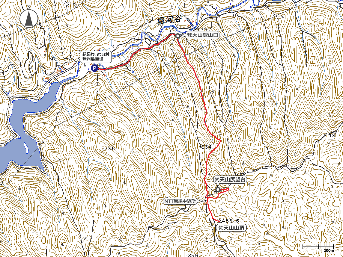 以前は夜景を見に行ったのですが、どうも街から遠いのと山々がたくさん見えるようなので、昼間に行ってみました。紀泉わいわい村から、梵天山の登山口は松茸シーズンの9月中旬から11月末まで入山禁止になっているようです。最初は沢筋に沿ってなだらかな登りです。上流付近より、梵天山のピークが見えてきますが、ここからの登り道が荒れていました。急斜面な上に階段は土で埋まっていて、かなり歩きにくかったです。電波塔、道路にでる200mほど手前にはロープがあります。電波塔のところに出ると左側の道路のところに出ます。この道路は和歌山県の根来寺に通じていて、ここまで車でこれますがかなり道が荒れています。道路に出て左が展望台、右が山頂に通じていますので、まずは山頂へ向かってから、展望台へ行きました。展望台からは夜景と違い、お菊山をはじめ、紀泉アルプスの山々が見え、淡路島の山々や六甲山、明石海峡大橋、南側は和歌山まで一望できます。やっぱり、紀泉の山々はいいですね!