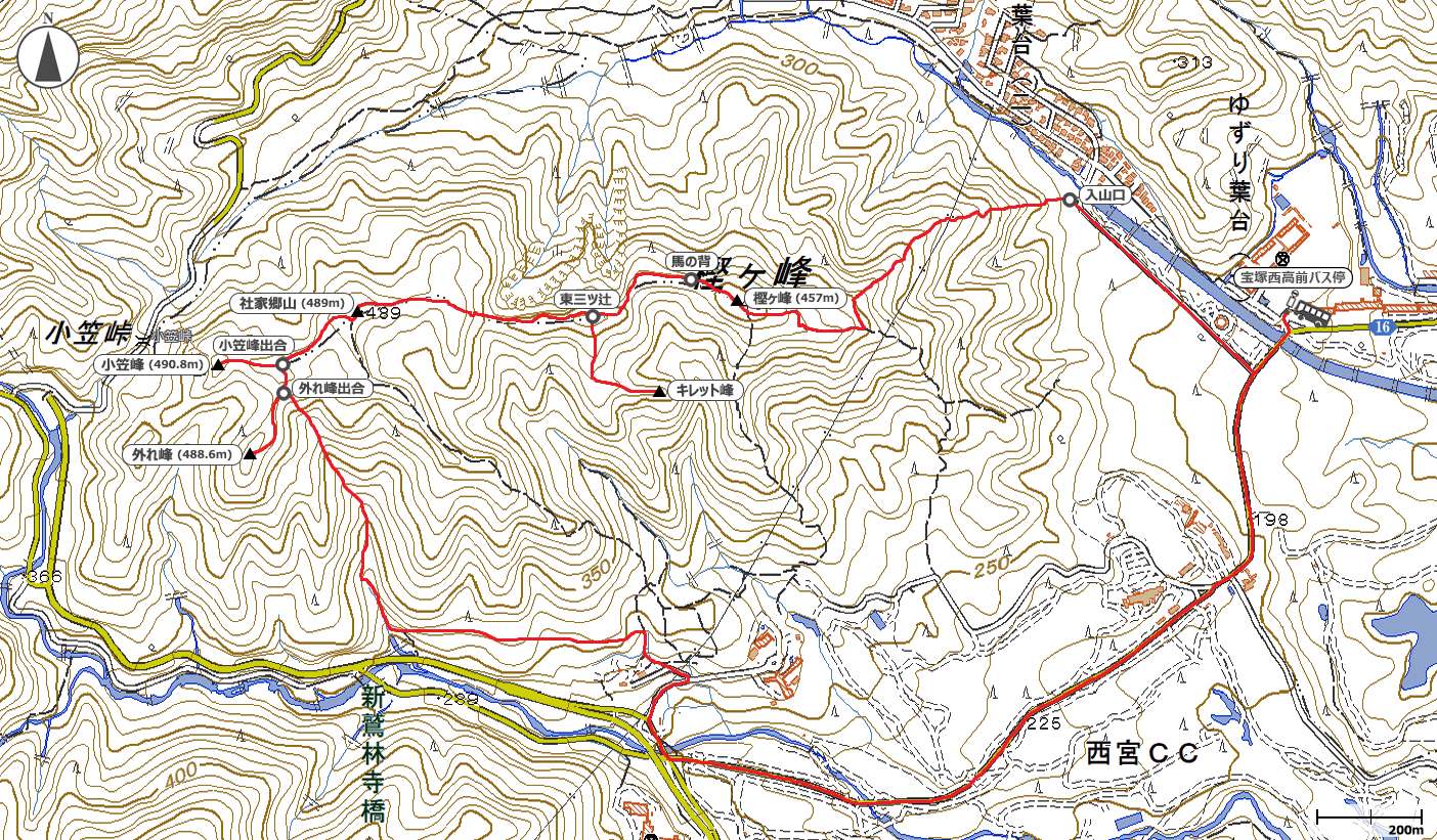 11:30宝塚西高校バス亭→11:45樫ヶ峰登山口→12:20樫ヶ峰山頂→12:40馬の背