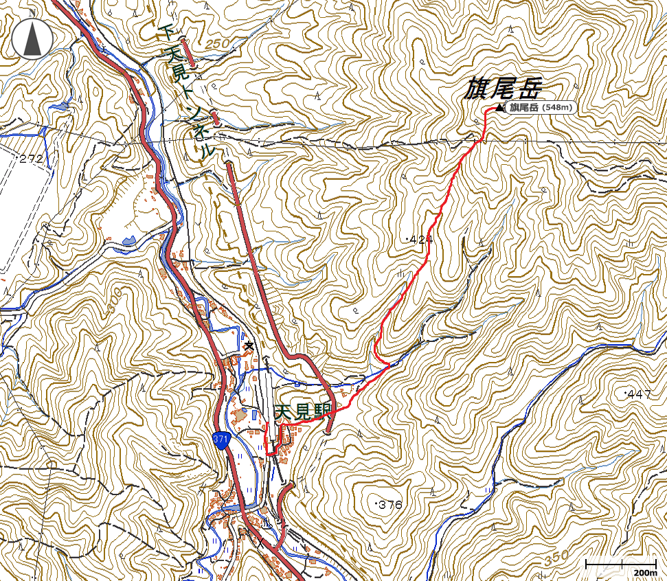 14:58天見駅→15:48旗尾岳→15:57下山開始→16:33天見駅