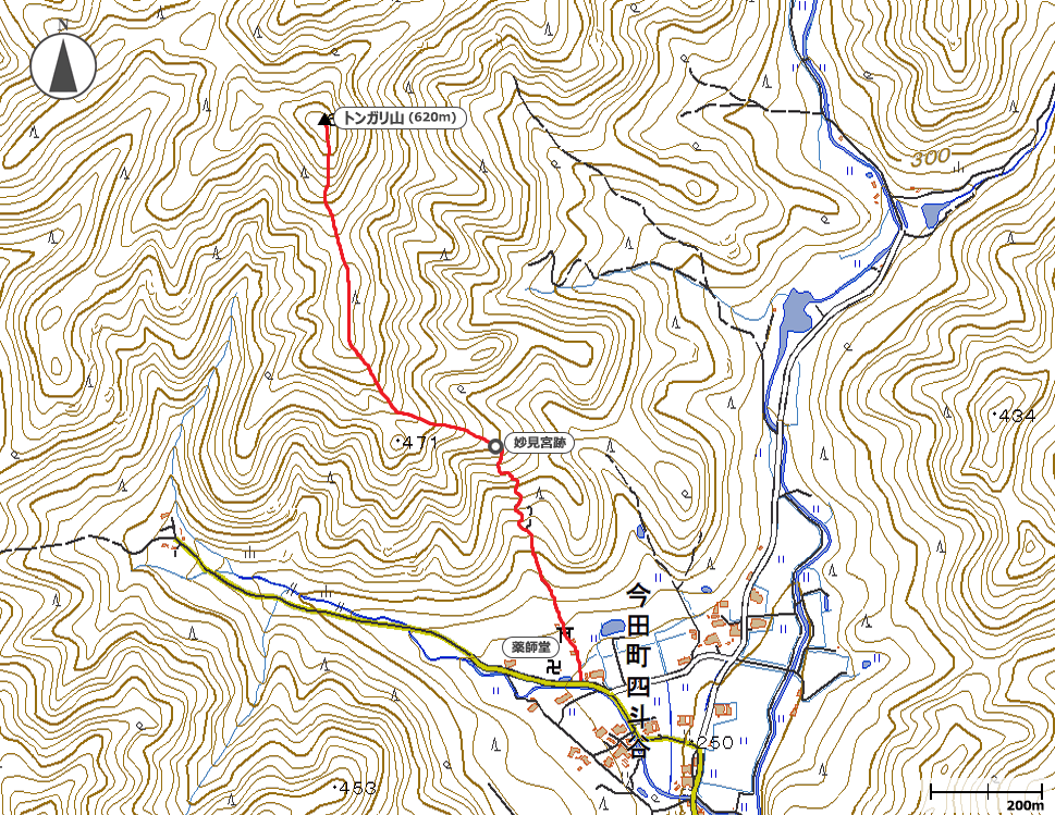 12:20四斗谷公民館→12:30薬師堂→12:55妙見宮跡→13:35トンガリ山頂