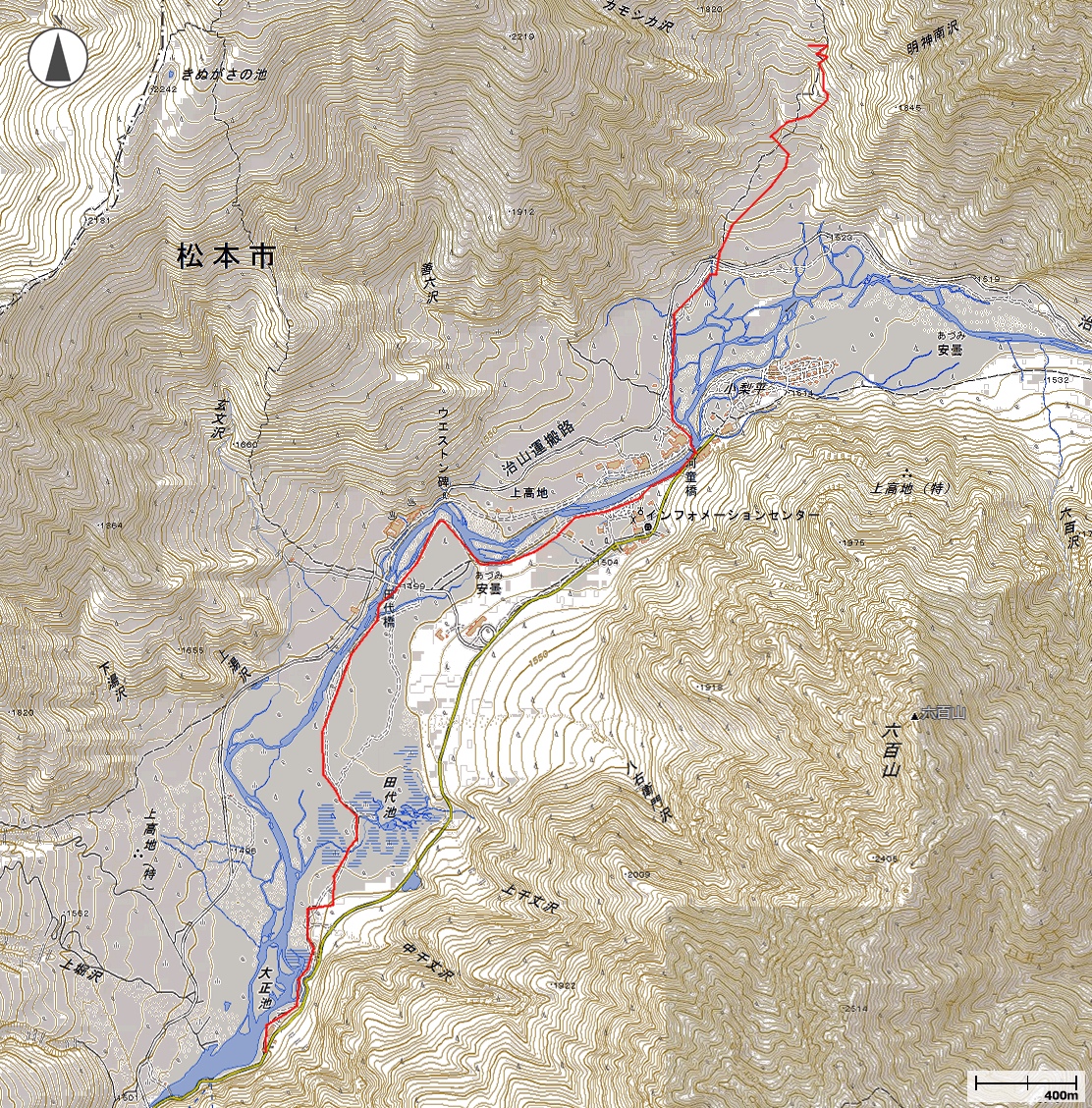 8:20大正池→10:00河童橋→10:20昼食(11:15)→13:10岳沢の下のガレ場