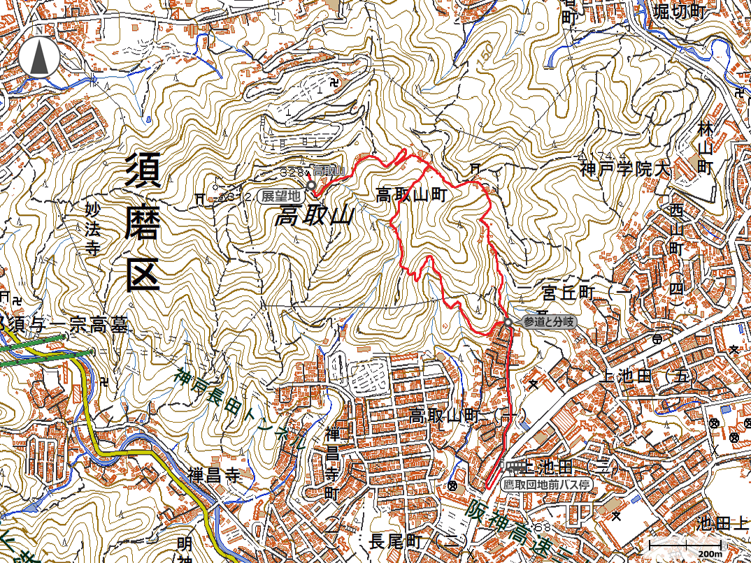 16:20鷹取団地バス停→16:38高神の滝→17:16高取山頂