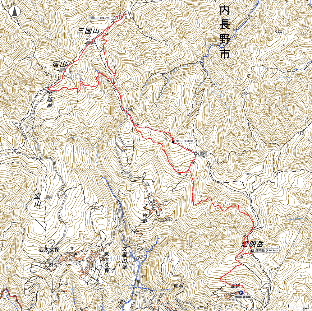 →16:47三国山→16:58下山開始→17:36畑山→17:40深タワ
