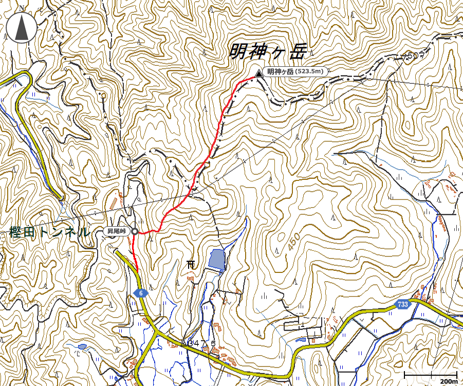 16:00府道6号線→16:05昇尾峠→16:30明神ヶ岳山頂