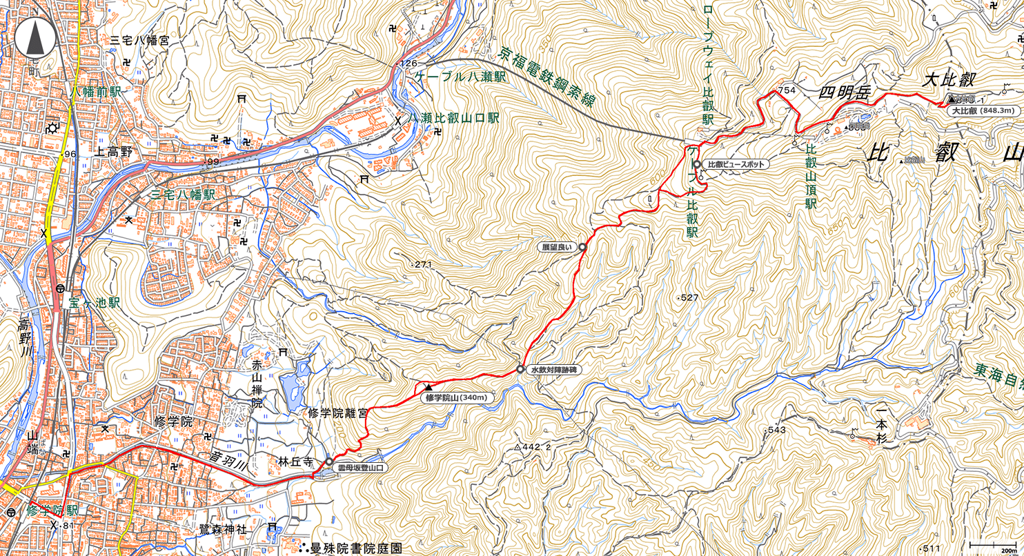 →16:09ケーブル比叡駅→16:57雲母坂登山口→17:15修学院駅