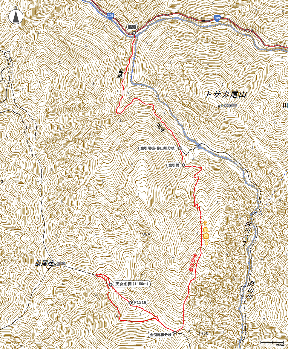 →14:12金引尾根分岐→15:34金引橋→16:11熊渡