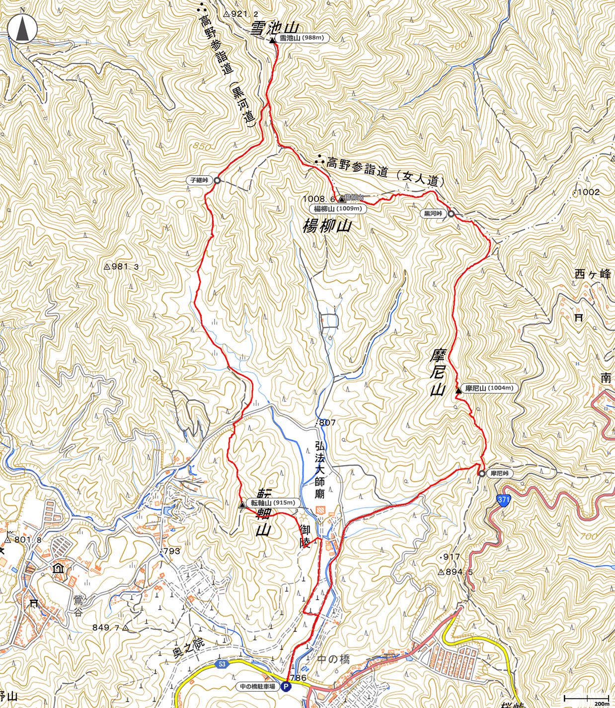 →11:14摩尼峠→11:32奥の院の駐車場→11:48中の橋駐車場