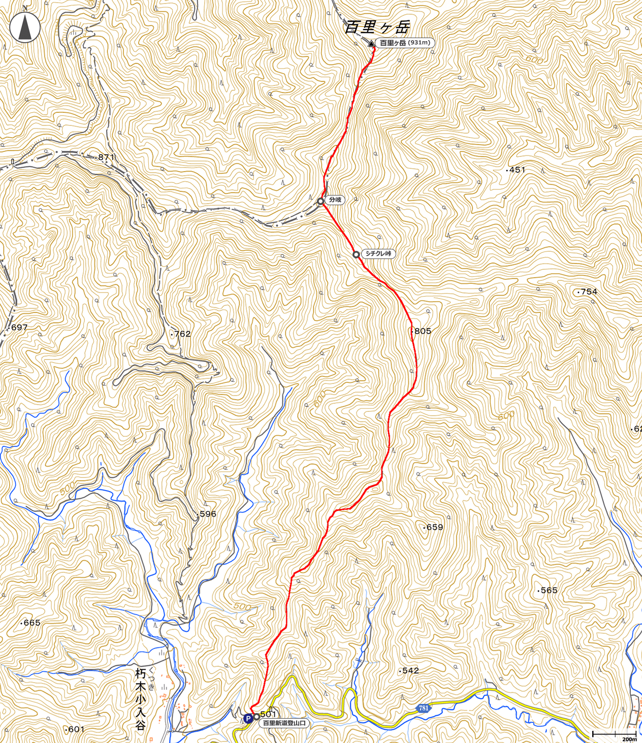 →9:10下山開始→9:27分岐→10:36百里新道登山口