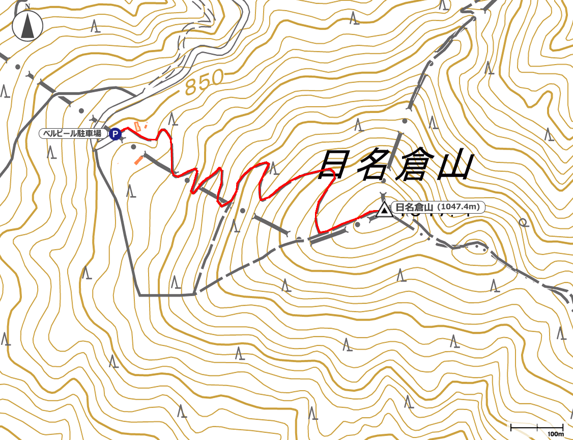 15:39ベルピール駐車場→16:11日名倉山→16:41下山開始→16:58ベルピール駐車場