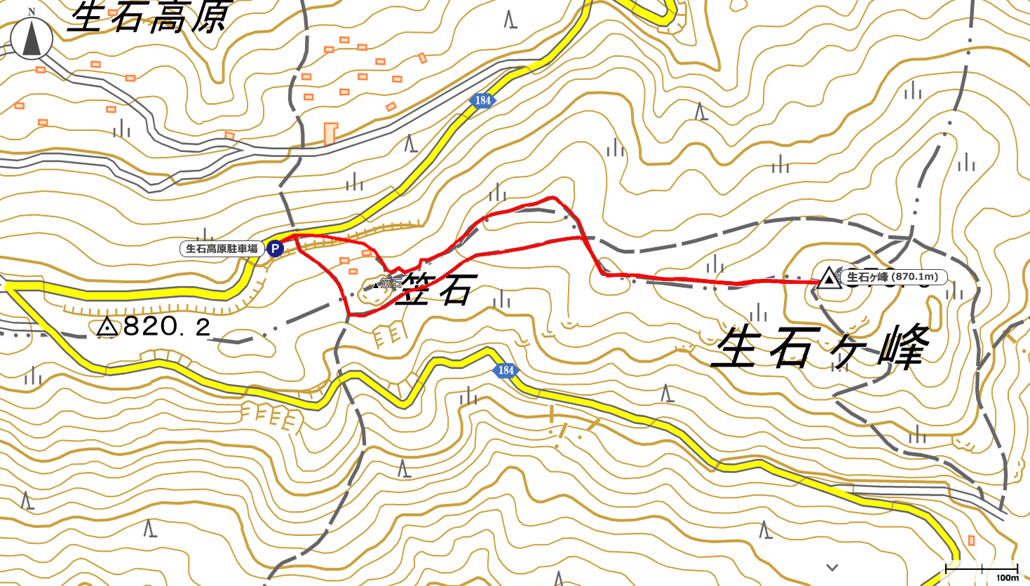 11:11生石高原駐車場→11:36生石ヶ峰→12:02下山開始