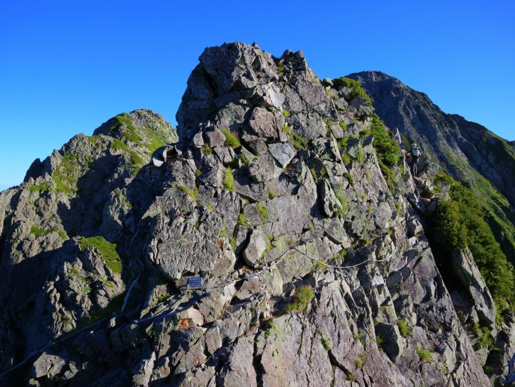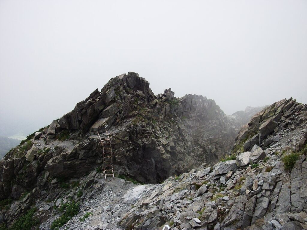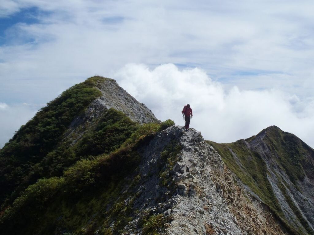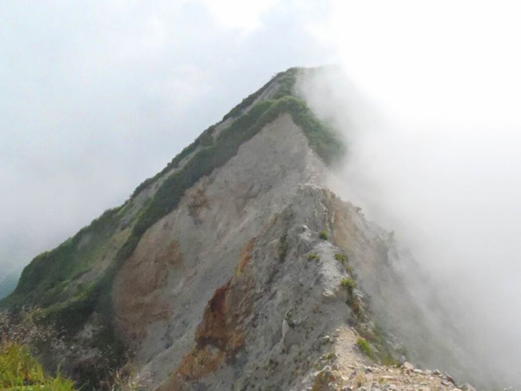 一言でいえばホールドポイント、手で持つところがない剃刀のような細尾根の縦走路になっているということです。それにその細尾根はいつ崩れてもおかしくありませんので、滑ってしまったり転んでしまうとと一発で滑落死となります。